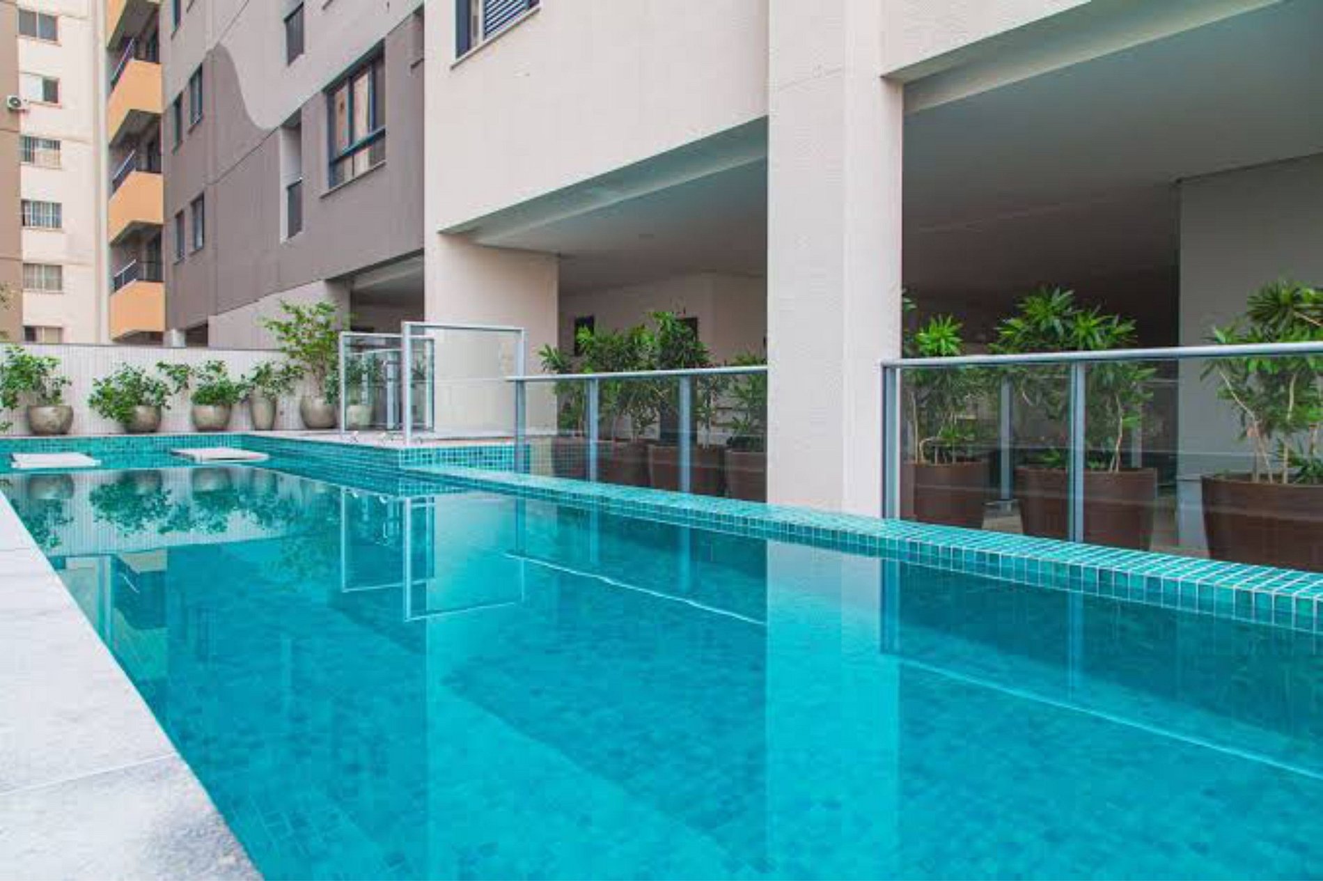 Áreas com acesso permitido aos hóspedes: Piscina, Playground, Quadra e Academia.