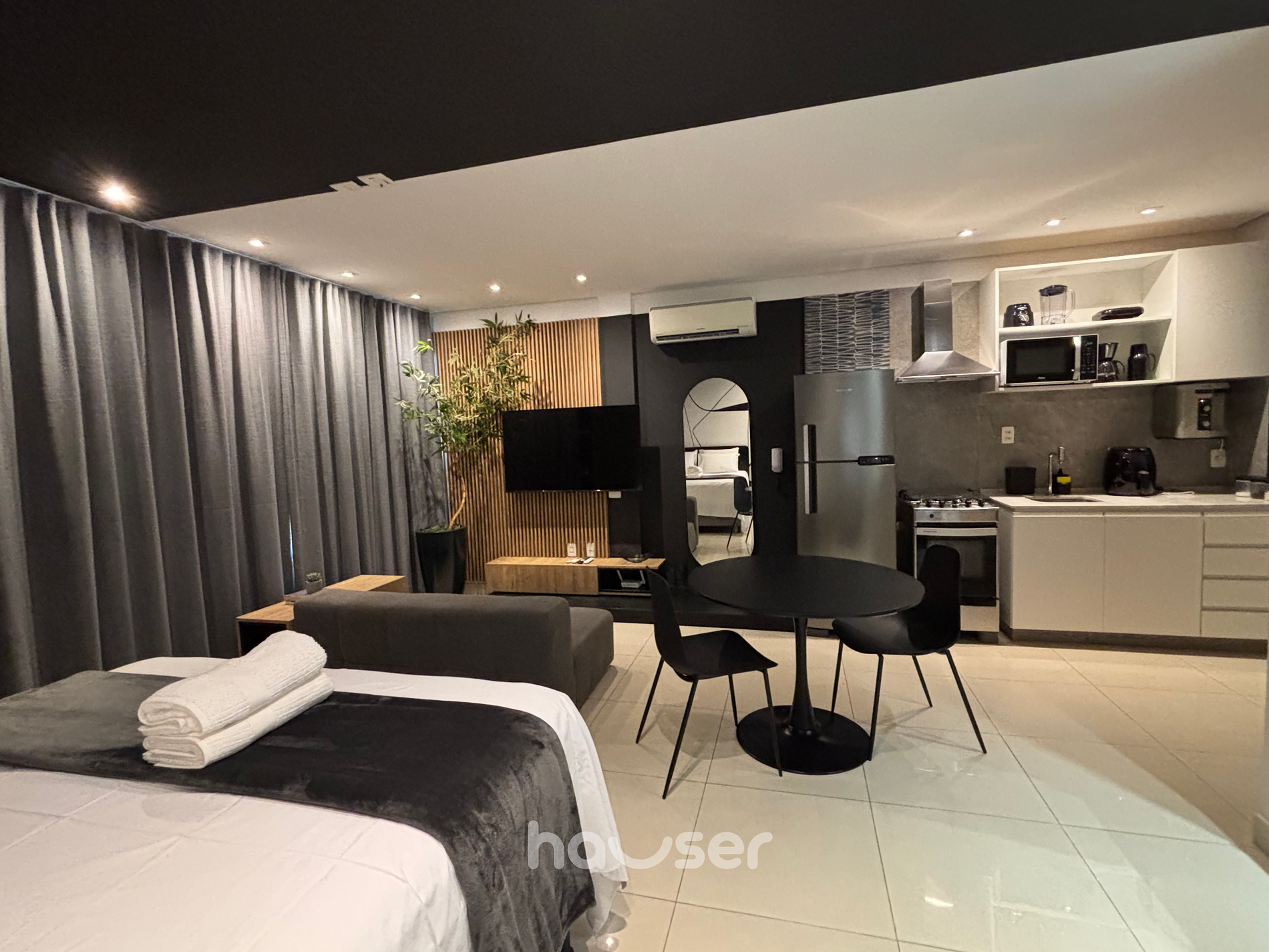 Esta é a escolha perfeita se você quer se sentir em casa! Flat Studio totalmente mobiliado, TV, Btv, Wi-Fi exclusivo 700mb e ar-condicionado.